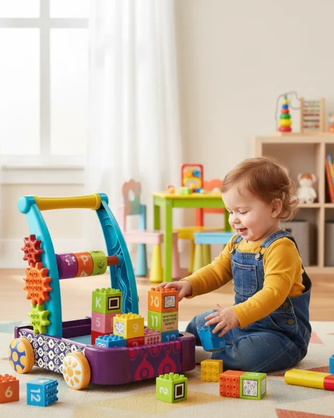 El Caminador de Bebé con Bloques de Encastre es la opción ideal para acompañar a tu pequeño en sus primeros pasos. Diseñado para niños de 6 a 15 meses, este caminador ofrece una barra de empuje que proporciona estabilidad y seguridad mientras exploran su entorno.