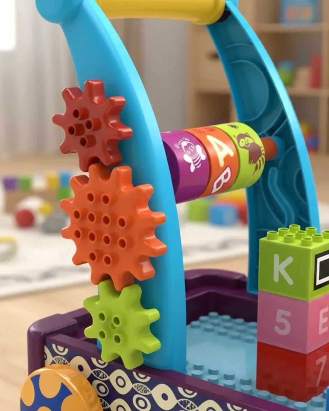 Los bloques de encastre incluidos fomentan el desarrollo cognitivo y la coordinación motora, permitiendo que los bebés jueguen y aprendan al mismo tiempo. Su diseño sin género lo convierte en un producto versátil, adecuado para cualquier niño o niña.